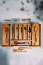 تقسیمبندی منظم: قاشق، چنگال، کارد و سایر ابزار آشپزخانه را به صورت مرتب از هم جدا کن.