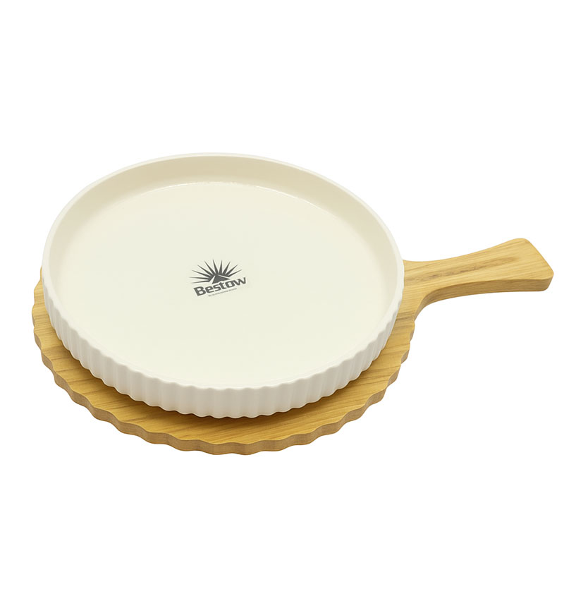 خرید دیس گرد سرامیکی با پایه چوبی – زیبا، مقاوم و کاربردی
