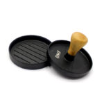 این محصول از جنس مقاوم و باکیفیت ساخته شده و دارای یک دسته چوبی ارگونومیک است که استفاده از آن را راحت و بدون خستگی میکند. سطح داخلی قالب دارای شیارهای برجسته است که علاوه بر زیبایی، باعث مغزپخت شدن بهتر گوشت و جلوگیری از چسبندگی میشود.