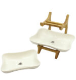 خرید میوه خوری مستطیل دو طبقه سرامیکی با پایه چوبی – زیبا و کاربردی